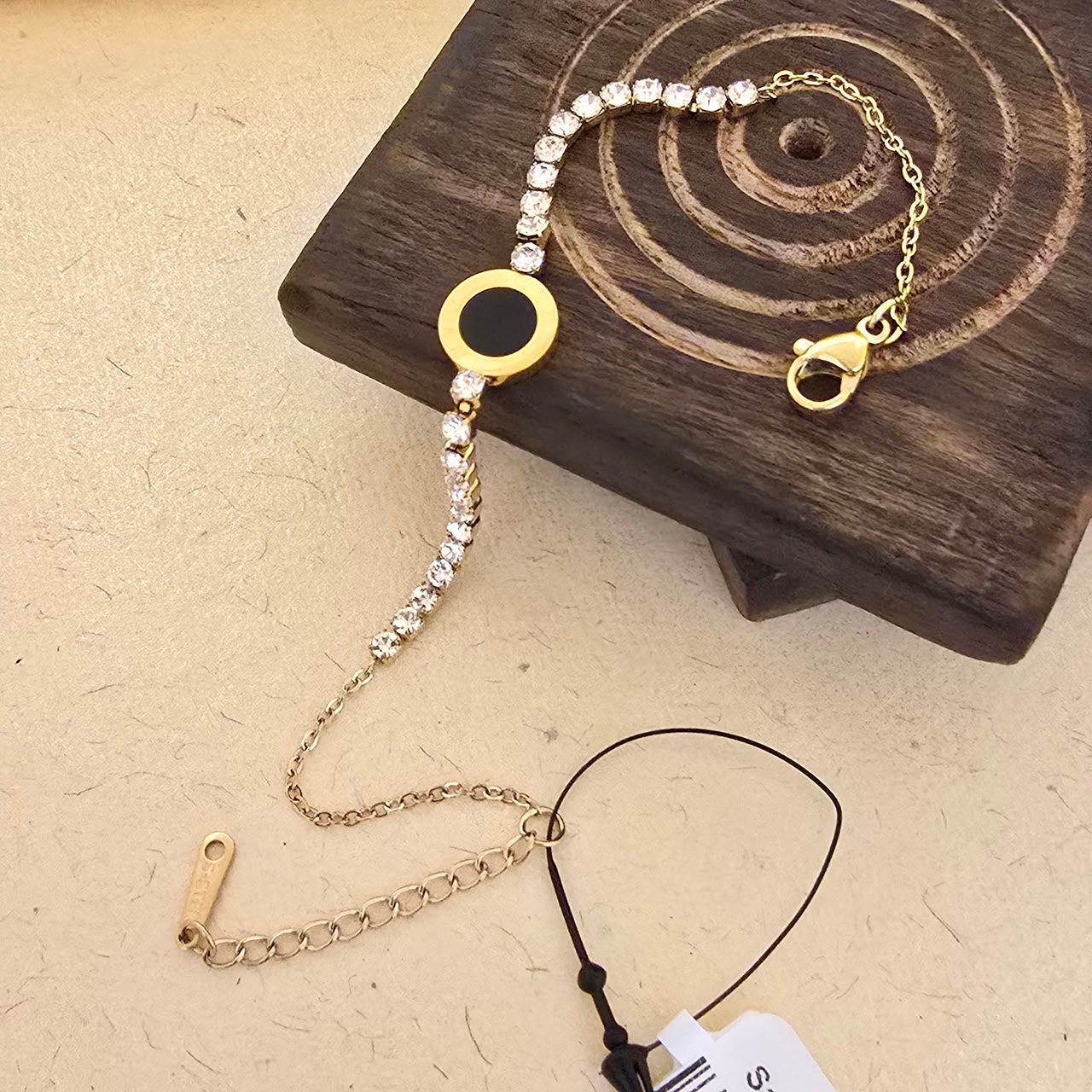 Minimal, modern, and effortlessly stylish โ this Gold Crystal Charm Bracelet is designed for women who love subtle elegance with a statement twist. Featuring a delicate line of sparkling crystals paired with a sleek black enamel charm, this bracelet blends luxury with contemporary charm.